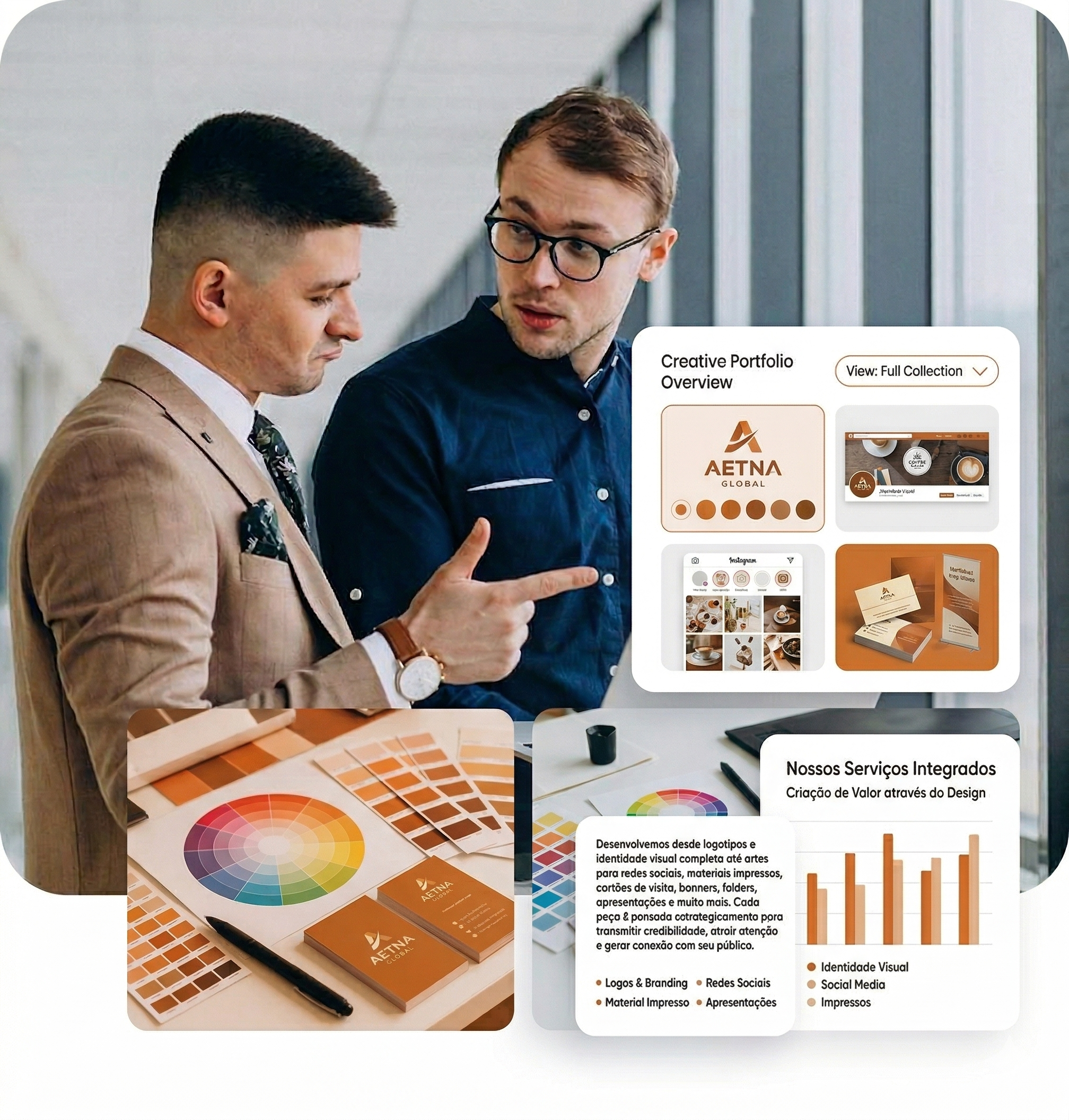 Criação de marcas com design estratégico, logotipo, paleta de cores, tipografia e materiais gráficos.
